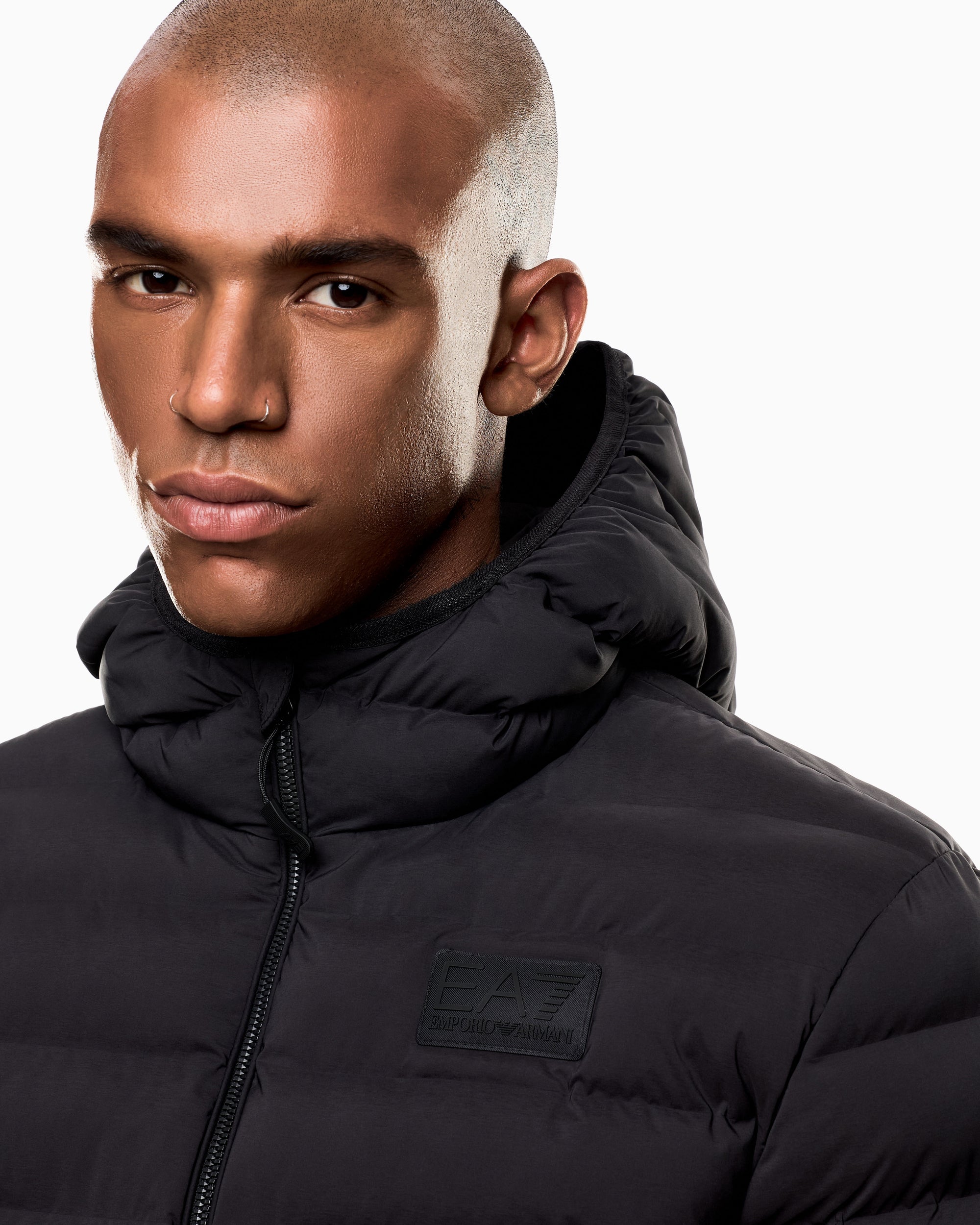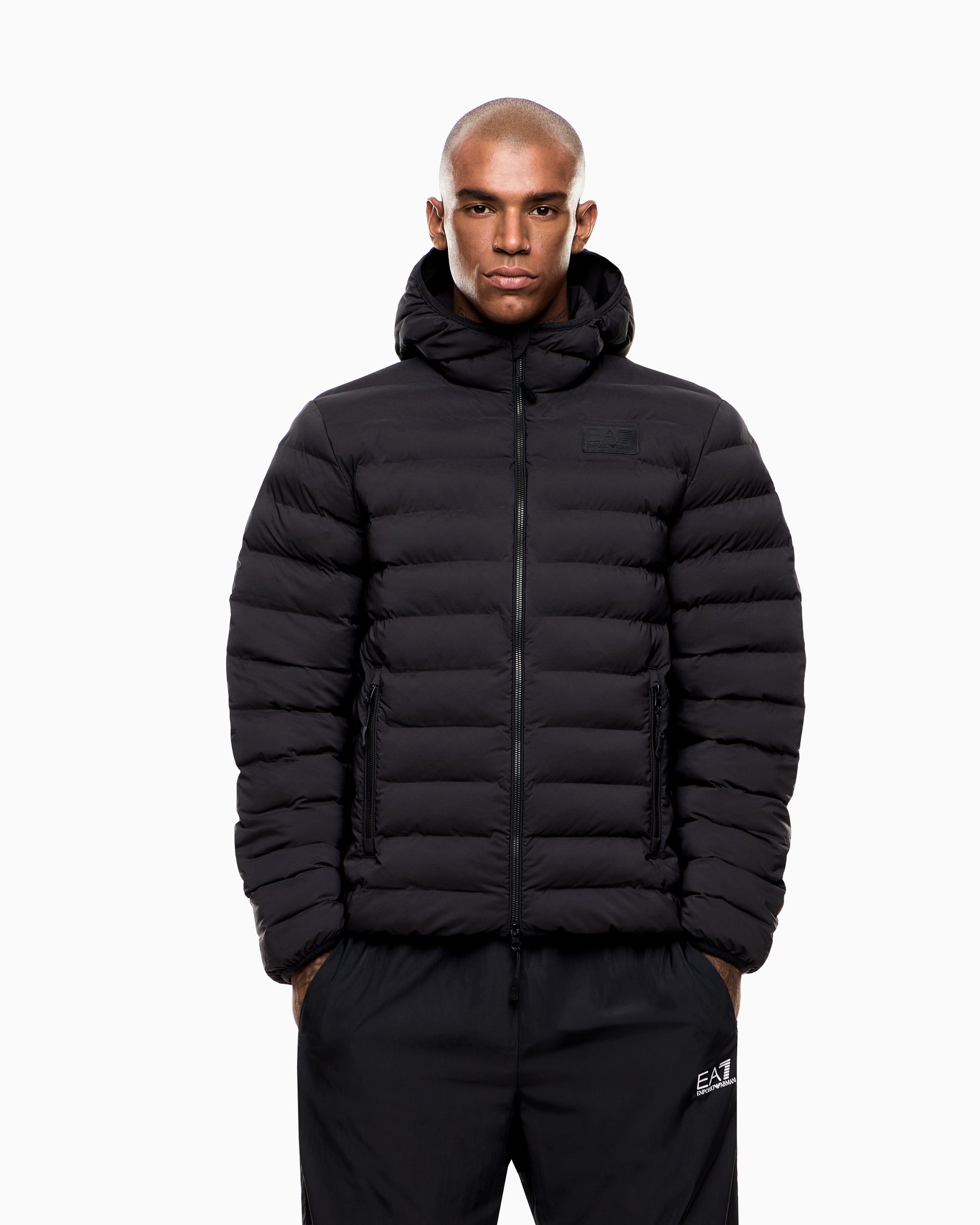 EA7 Gewatteerde Jas met Capuchon – Zwart